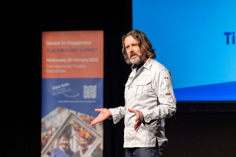 What do you want to commit to? Investing money or time into something means you must have seen yourself in it, so signing up always goes beyond the portfolio data. But in these times, where do you see yourself? At the Invest in Happiness Summit, a recent placemaking event held in the Haymarket Theatre in Basingstoke, guests were invited to consider how to invest in the very feelings that inspire commitment to somewhere – so I was obviously happy to be welcoming everyone to the stage… but should I have been surprised at how many people turned up?